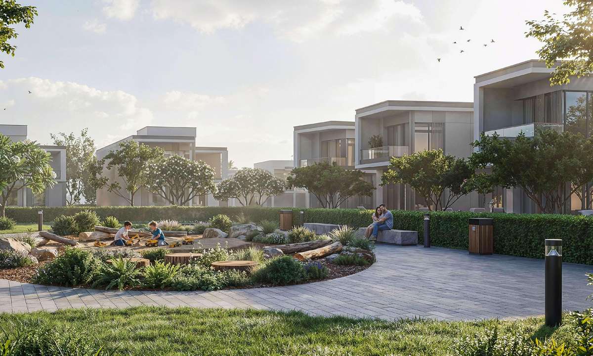The location of The Greens cluster is embedded within landscaped corridors, surrounded by gardens and tree-lined paths that shape a calm and intimate living environment. Homes are directly linked to the green spine and pedestrian network, set gently away from high-activity zones, and within a short walk of neighborhood amenities, offering privacy alongside everyday convenience.