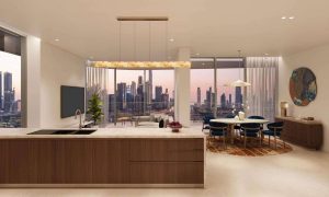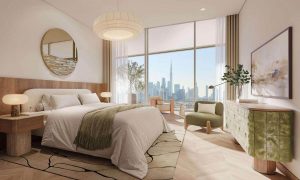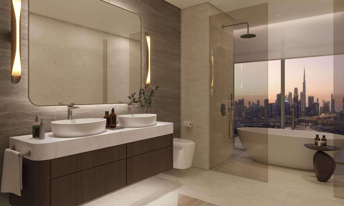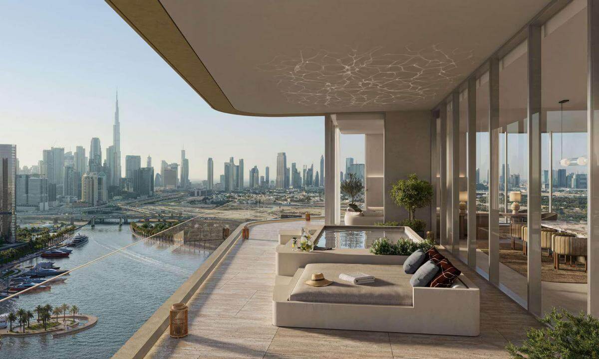 The development offers one-, two- and three-bedroom residences, along with four-bedroom duplex penthouses, defined by purposeful lines and refined geometry that frame iconic views of the Burj Khalifa, the Downtown skyline and the Dubai Canal.