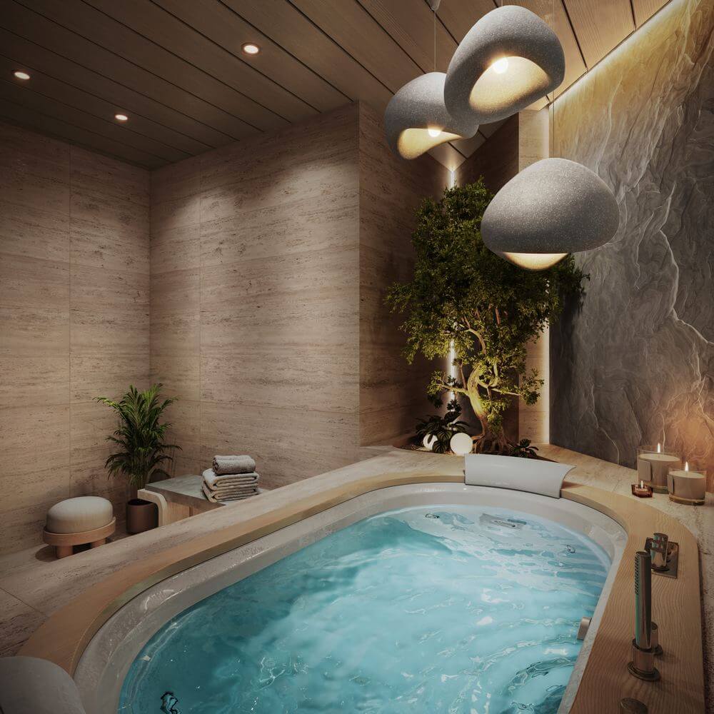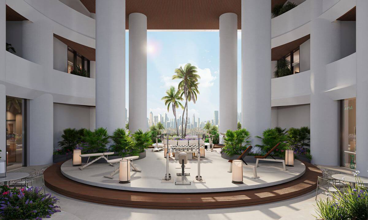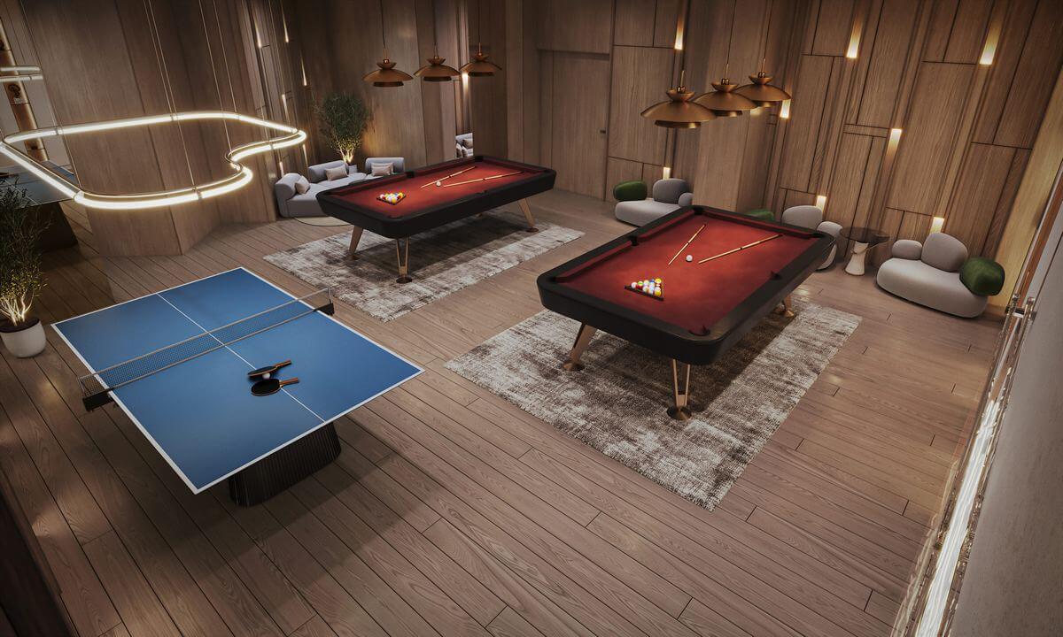 A diverse range of shared spaces has been planned to support movement, relaxation, and social interaction. Both indoor and outdoor amenities are seamlessly integrated into the building, offering residents multiple ways to unwind, stay active, or connect with their surroundings throughout the day.