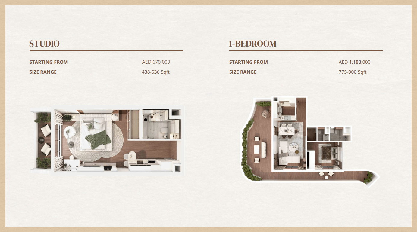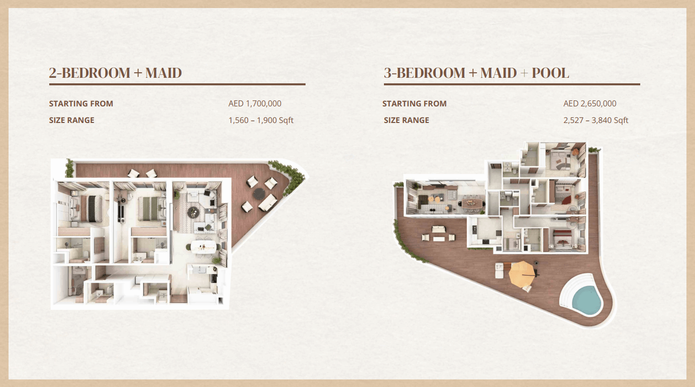 Layouts vary to suit all unit types, from studios and one-bedroom apartments to two- and three-bedroom homes, to bedrooms where you can enjoy your own private pool.