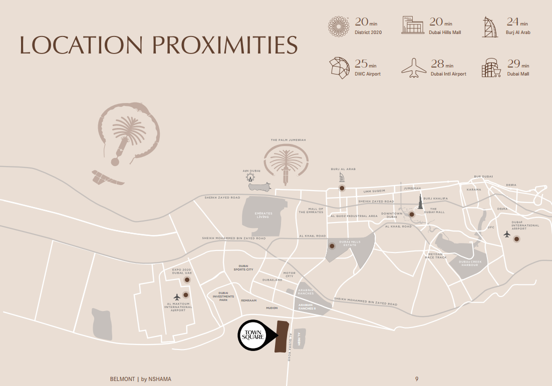 Belmont at Town Square is set within one of Dubai’s most well-planned and vibrant communities, defined by contemporary design and expansive green spaces. With retail, schools, healthcare, and leisure seamlessly integrated into the masterplan, and excellent connectivity to key city destinations, it offers a balanced lifestyle of convenience, accessibility, and lasting value.