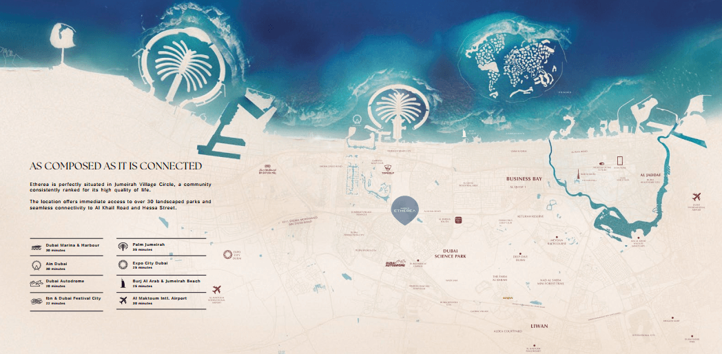 Etherea is perfectly situated in Jumeirah Village Circle, a community consistently ranked for its high quality of life.
