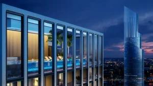 Moonlight offers a curated selection of amenities designed to enhance everyday life and promote a sense of renewal. On the first floor, dedicated office amenities provide ample seating areas. The rooftop level offers a common, active gym for male and female residents, an inviting infinity swimming pool with stunning views and equally ample seating areas.