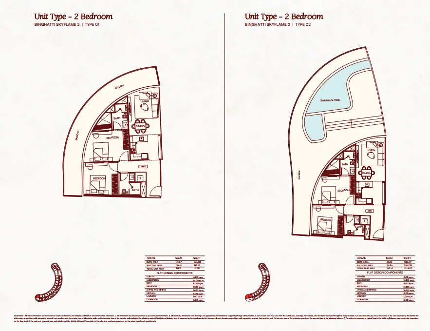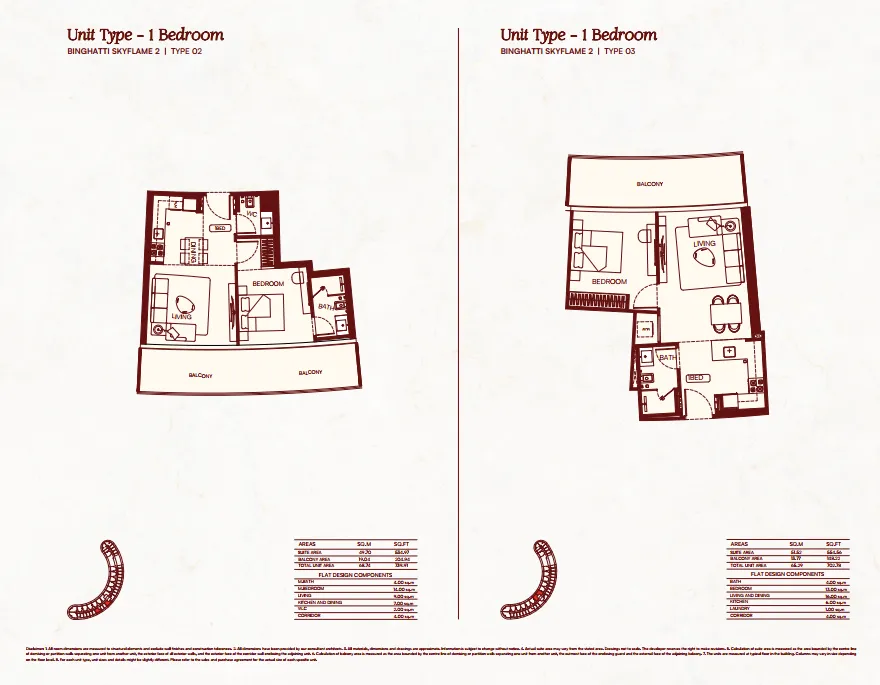 Binghatti Skyflame features efficient, well-planned layouts with spacious living areas, private balconies, and 3.25-metre ceiling heights. Designed to maximize light and comfort, the residences offer a refined, resort-inspired living experience.