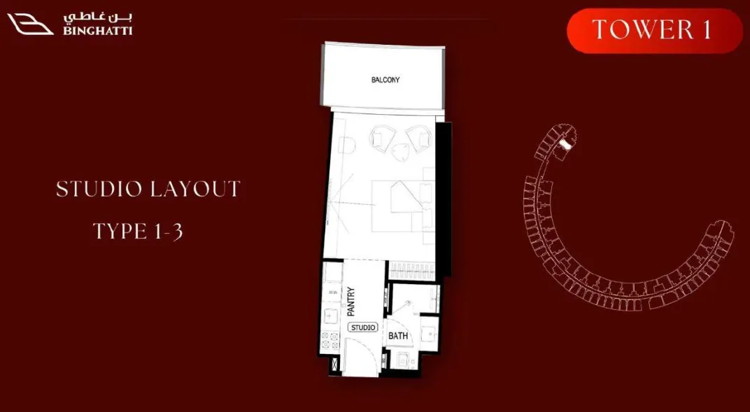 Binghatti Skyflame features efficient, well-planned layouts with spacious living areas, private balconies, and 3.25-metre ceiling heights. Designed to maximize light and comfort, the residences offer a refined, resort-inspired living experience.