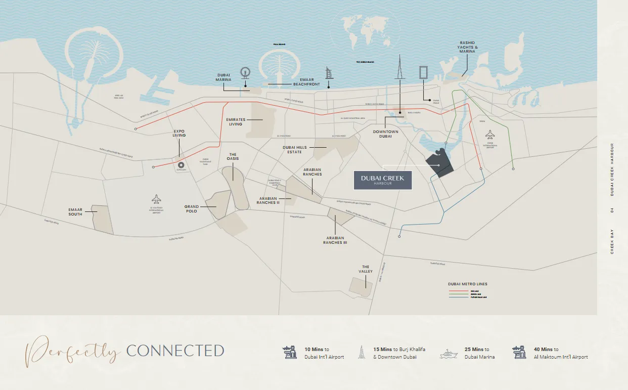 Experience a unique waterfront enclave where contemporary luxury, serene nature and innovation come together. It features iconic amenities like Creek Marina, a haven for yachting enthusiasts, and close proximity to the Ras Al Khor Wildlife Sanctuary, renowned for its rich biodiversity, including flamingos.