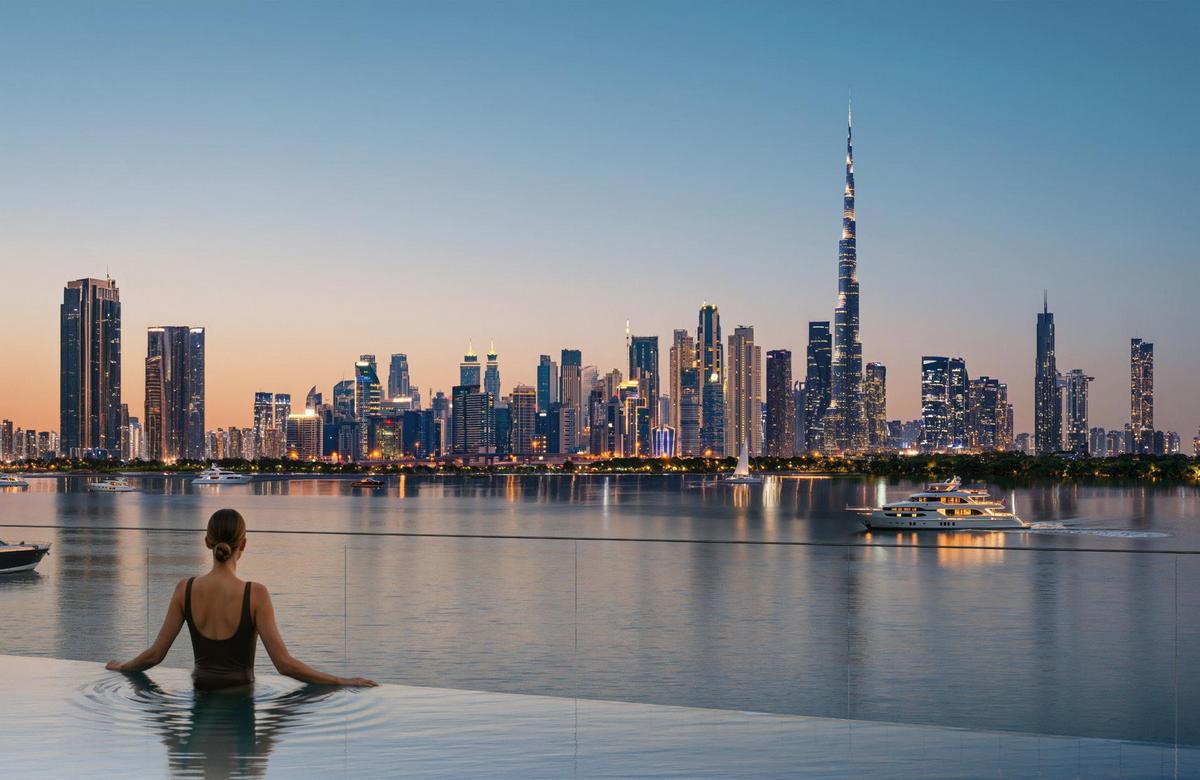 An idyllic bay with pristine water frontage, lush greenery, and sweeping views of Burj Khalifa and Downtown Dubai, Creek Bay offers a serene home and endless horizons of blue.