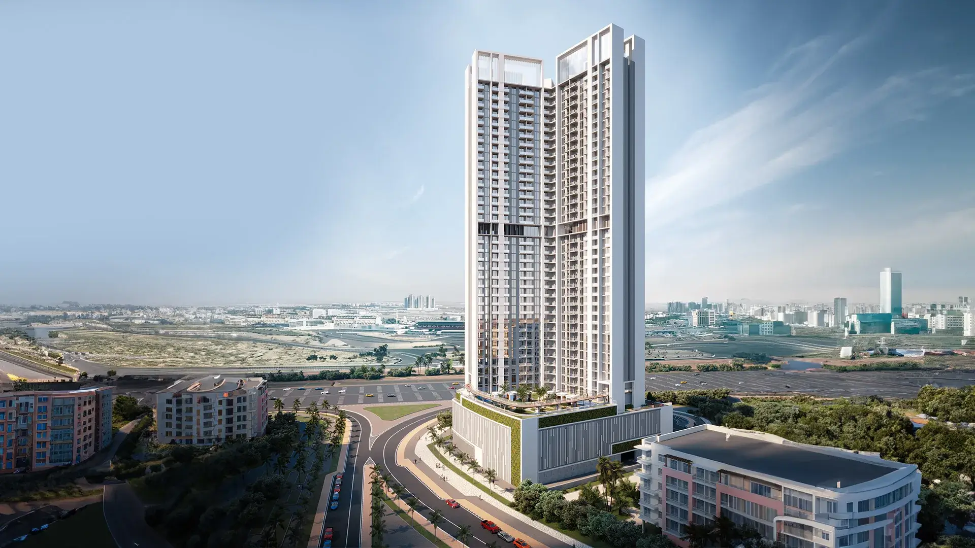 This unique residential project located in Arjan close to Miracle Garden, adjacent to the heavily travelled Sheikh Mohammed Bin Zayed road making it conveniently positioned and highly visible. The tower overlooks Miracle garden, Arabian Ranches and Motor city communities. The Concept was to create a new residential destination that celebrates “Mediterranean living” by maximizing usable outdoor space through balconies, terraces, gardens, parks, and plazas. The tower is orientated to allow maximum views and light into the scheme and creates a series of “external gardens” distributed around the building linked by an informal route with an outdoor pool and recreation area at various levels