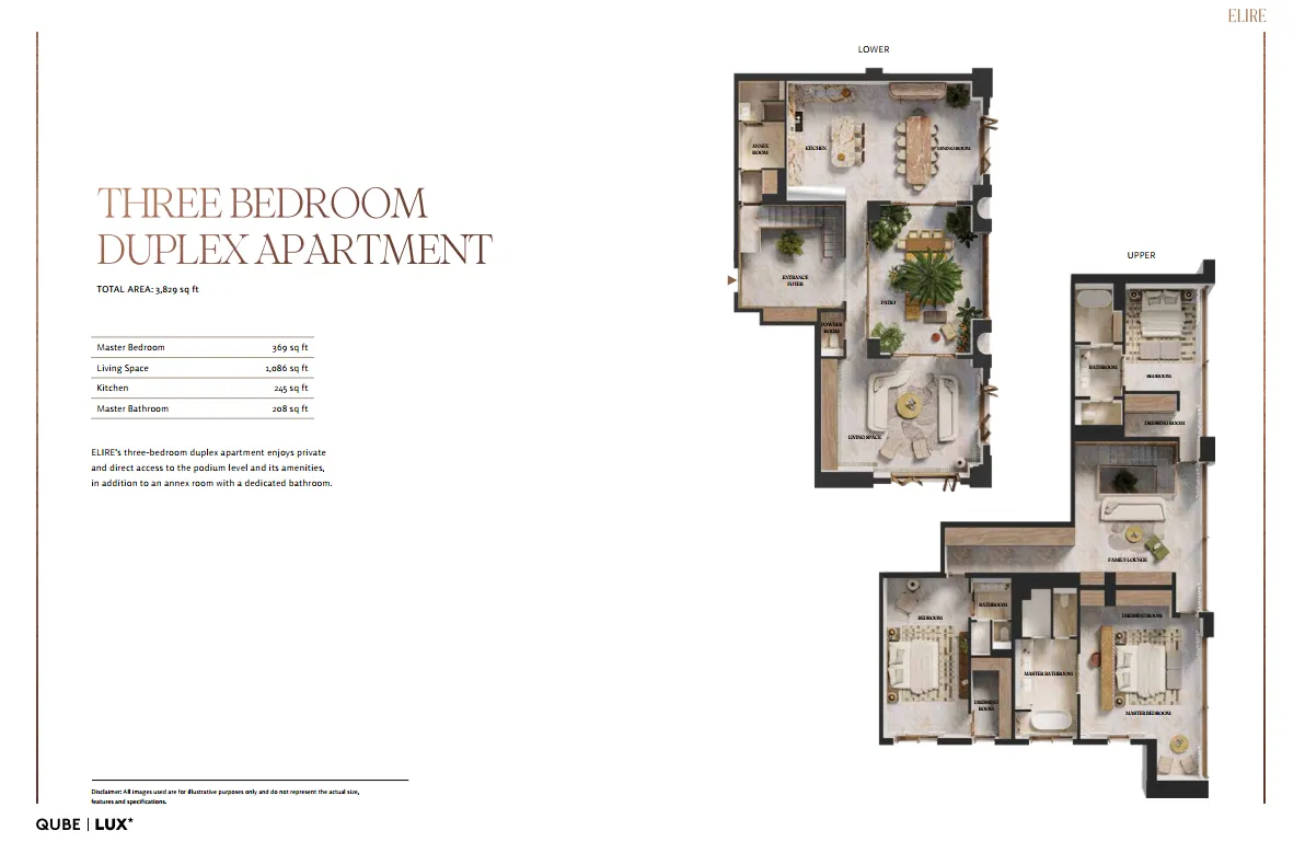 Located on Burj Khalifa Boulevard, ELIRE Managed by LUX is an exclusive collection of 100 branded residences managed by The Lux Collective, the award-winning global hospitality group behind the flagship brand LUX. Inspired by Emirati heritage and crafted in collaboration with world-renowned architects, ELIRE offers bespoke 1 to 3 bedroom residences, in addition to 3 and 4 bedroom duplexes. Residents enjoy access to luxury wellness spaces and the assurance of world-class hospitality, creating a signature living experience.