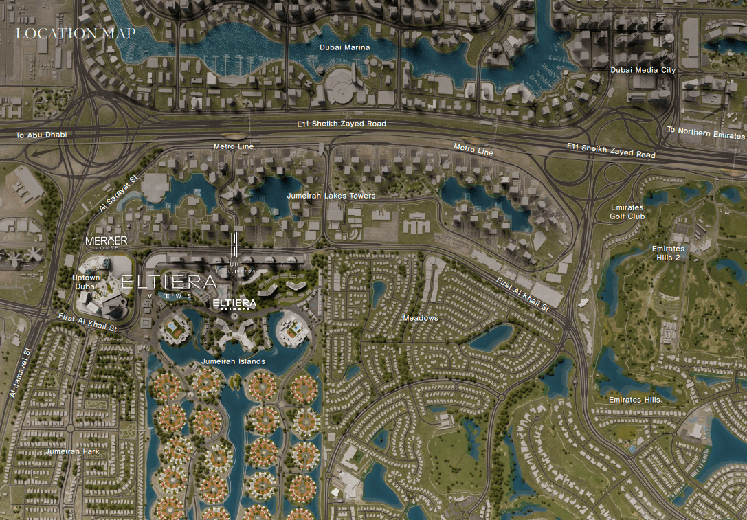 Situated at the southern edge of Jumeirah Lakes Towers and just minutes from Dubai Marina, Emirates Golf Club, and Ibn Battuta Mall, the community offers seamless access to both lifestyle and business hubs, placing you at the intersection of convenience and connectivity.