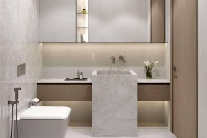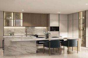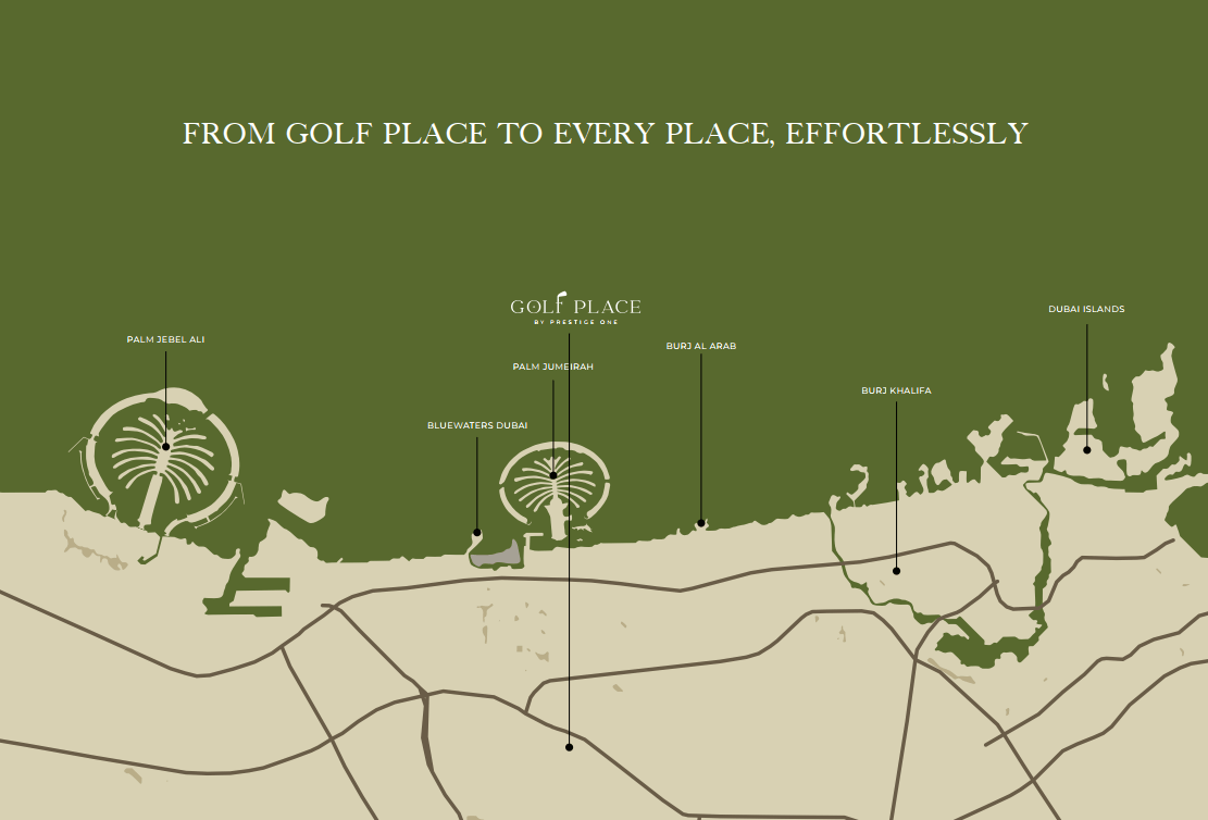 The architecture of Golf Place draws from the sweeping lines and organic rhythm of the surrounding fairways. Its bold, high-rise form mirrors the strength of its setting, with deliberate geometries and palettes that bring balance and clarity to each residence