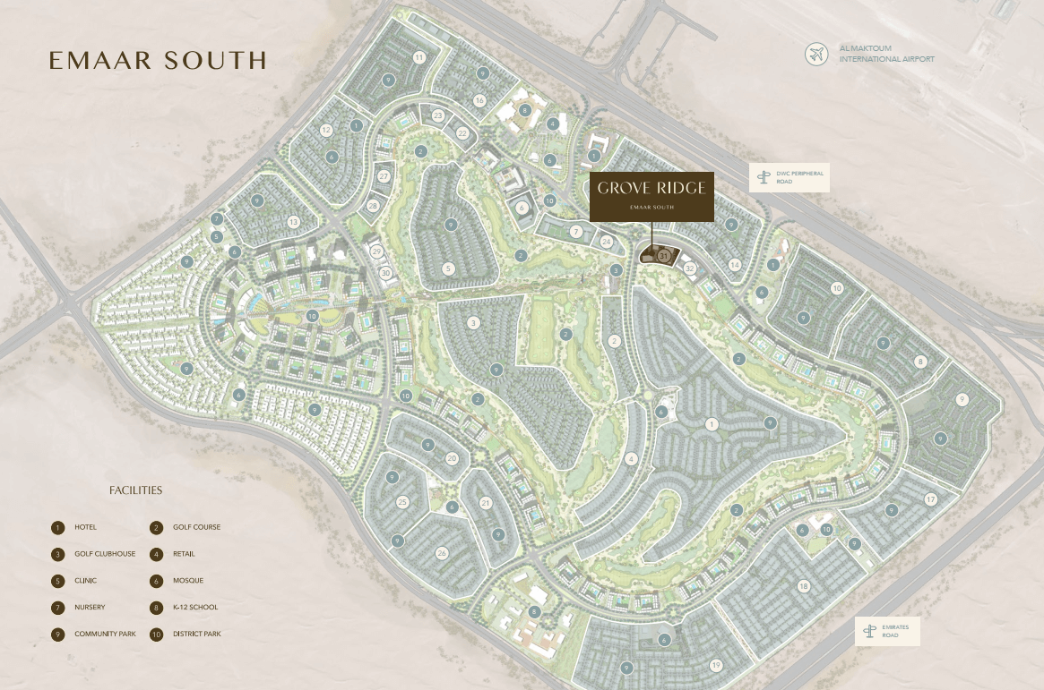 Emaar South is a vibrant community where picturesque green landscapes embrace contemporary living. Nestled around a championship golf course, featuring exquisite apartments and townhouses, it offers world-class amenities like hotels, retail, healthcare, education, and recreation. From the moment you arrive, a balance of nature, leisure and refined golf living unfold