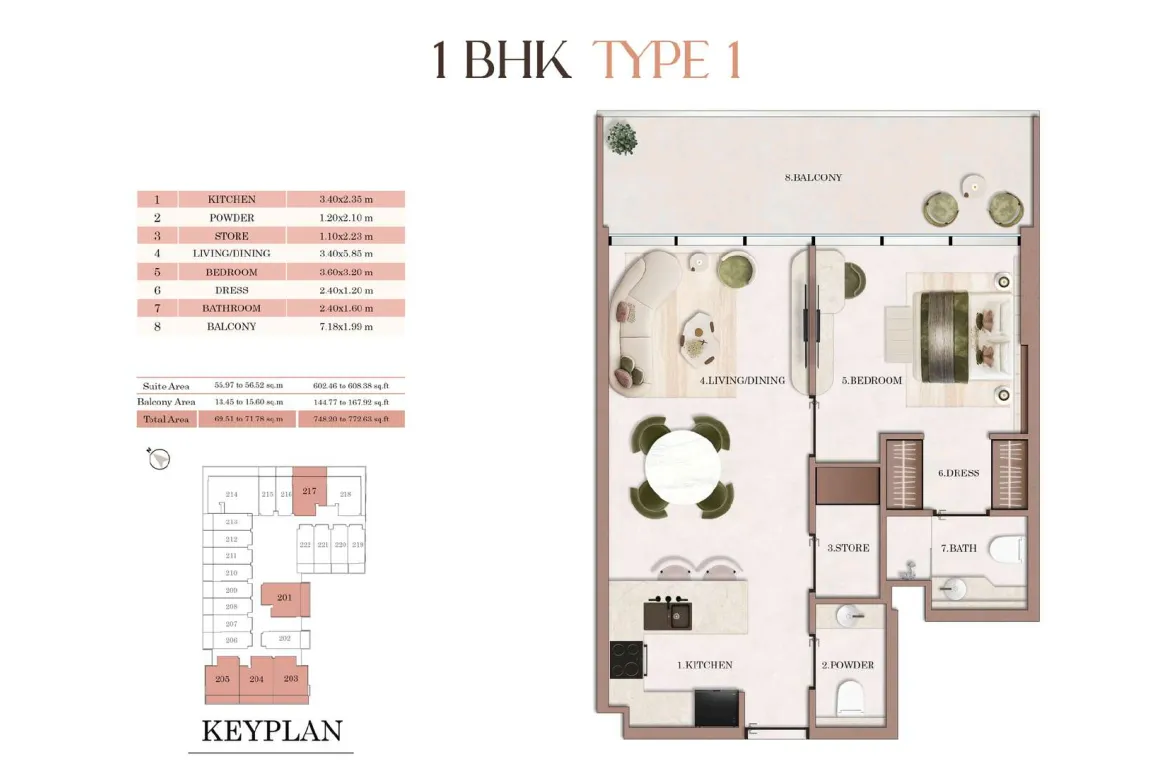 Smartly designed floor plans at Havencia maximise space, comfort, and functionality across studio, one-bedroom, and two-bedroom residences, ensuring elegant and efficient modern living.