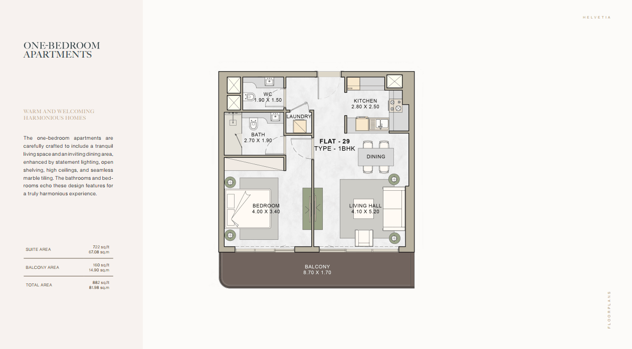 Discover the elegant collection of studio, one-, two-, and three-bedroom apartments designed for luxury living. Helvetia offers a premium lifestyle in a carefully curated, vibrant community with stylish amenities, contemporary homes and green outdoor space.