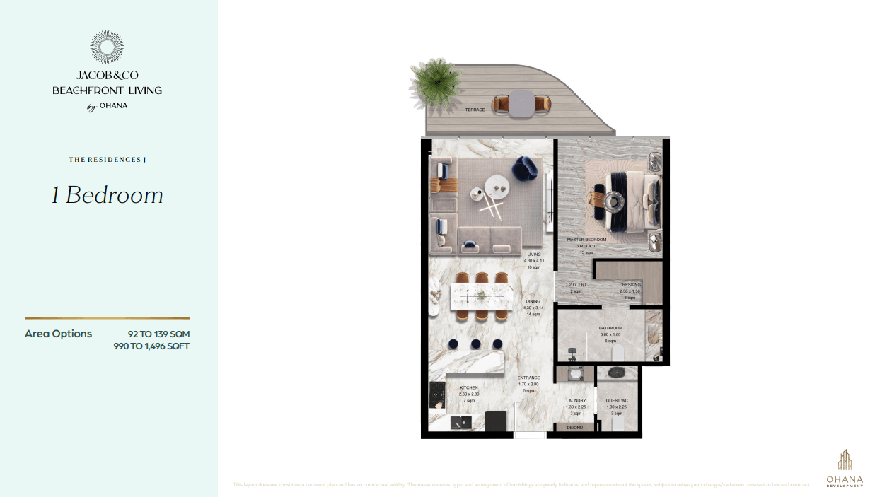 At Jacob & Co. Beachfront Living, wellness becomes a way of life. Imagine starting your day with a serene walk along the wooden beach boardwalk, surrounded by lush gardens. Enjoy privileged access to the Jacob & Co. Beach Club, along with world-class wellness facilities, offering an elevated lifestyle of tranquillity.