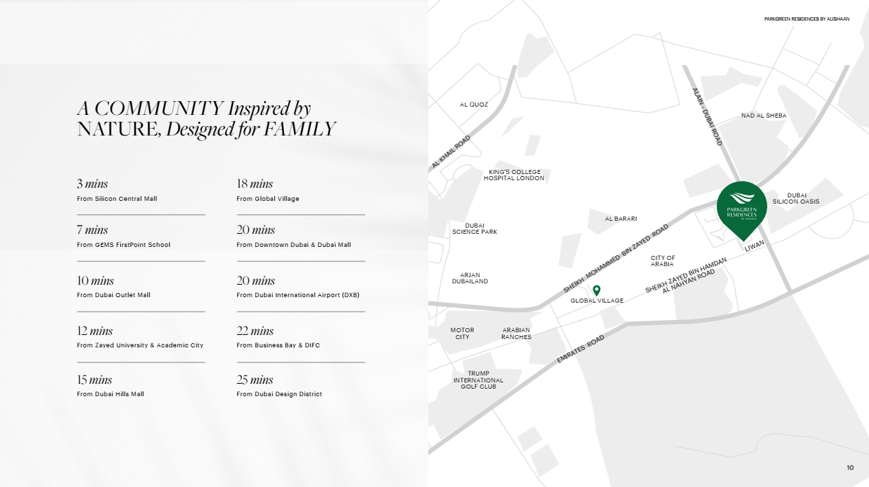 Parkgreen Residences by Alishaan is a thoughtfully designed mid-rise residential building in the heart of Dubai, ideal for families seeking peace, connection, and purpose. With timeless architecture, lush natural surroundings, and carefully curated amenities, it offers a nurturing environment where everyday living becomes a truly enriching experience.