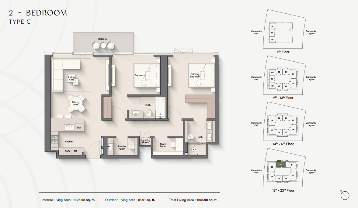 Mohammed Bin Rashid City (MBR City) is a creative urban development that unites elegant living and sustainability. As a renowned location in the heart of Dubai, MBR City provides world-class amenities such as some of the very best schools, healthcare institutions, and exciting retail and dining options to choose from. Riverton House community will enjoy direct access to a variety of leisure activities, including parks, sports facilities, and museums, all within minutes of their front door.