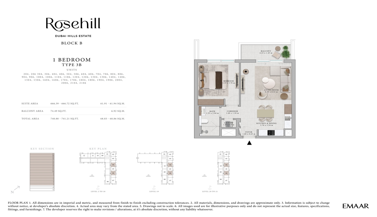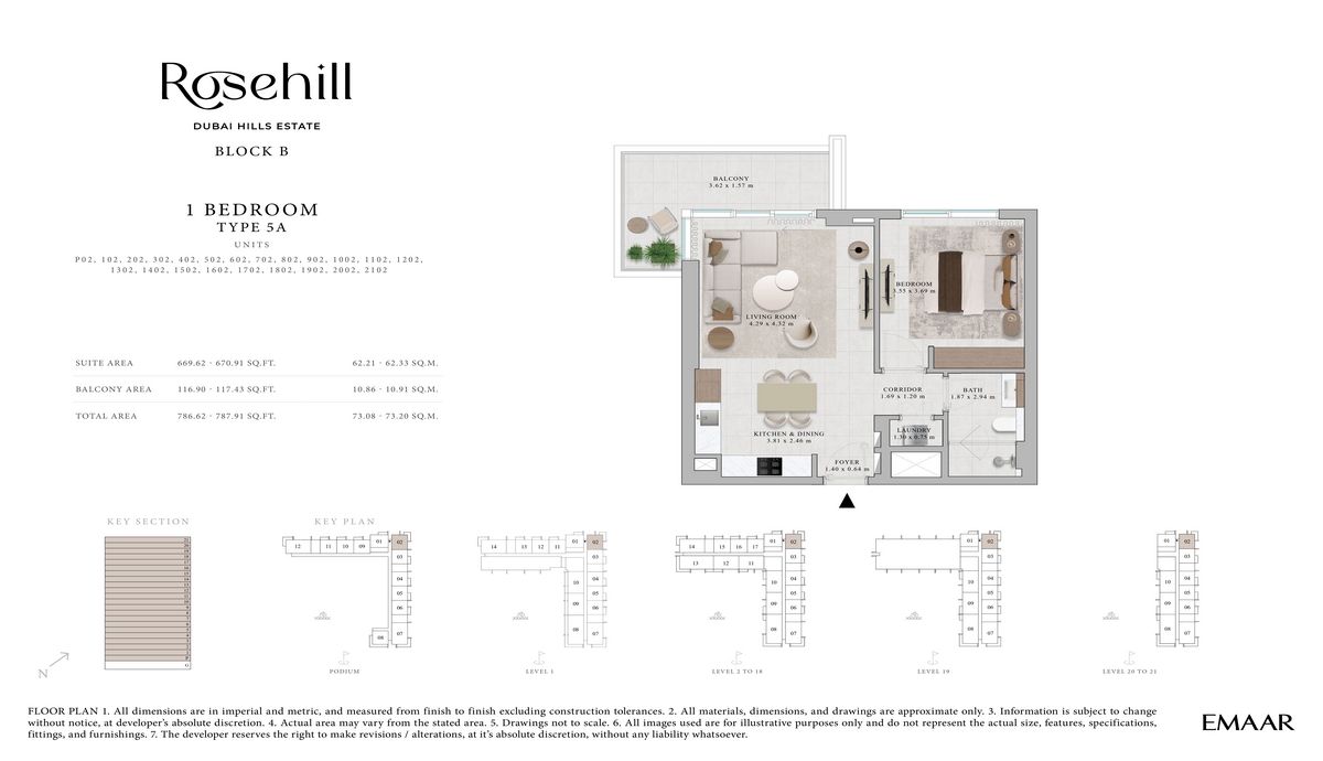 Discover 1, 2, and 3-bedroom apartments, artfully composed to embrace both space and soul. Bathed in natural light and framed by lush greenery, each residence blends seamlessly with its surroundings. Verdant front gardens create a gentle arrival, while select terraces open to panoramic views of rolling fairways and the Dubai Hills Golf Course. Here, life blossoms in rhythm with nature’s palette.