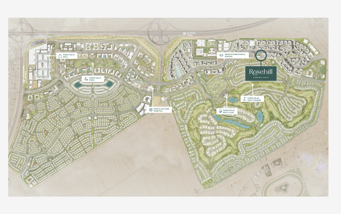 Rosehill at Dubai Hills Estate offers a prestigious lifestyle in one of Dubai’s most sought-after communities. Surrounded by lush greenery, world-class golf courses, top-tier schools, and premium shopping destinations, this prime location ensures seamless access to Downtown Dubai, Dubai Marina, and major highways—blending luxury, convenience, and connectivity in one exceptional address.