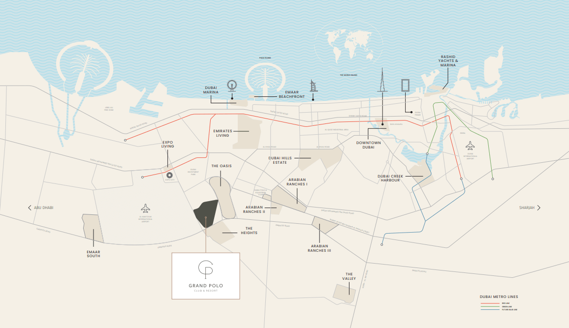 Located within peaceful surrounds yet effortlessly connected to Dubai’s most iconic destinations. Prime Location – 5 mins from Al Maktoum Int’l Airport, 10 mins to Expo City, 30 mins to Downtown Dubai.