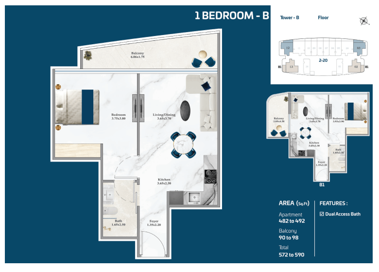 Smartly designed layouts with efficient space planning, natural light, and a smooth flow between living and private areas, offering comfort and practical everyday living at Serenz, JVC.