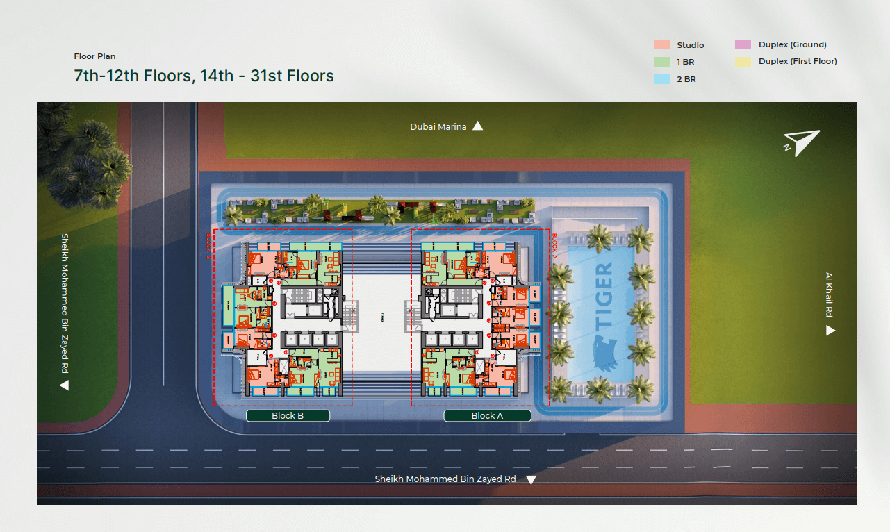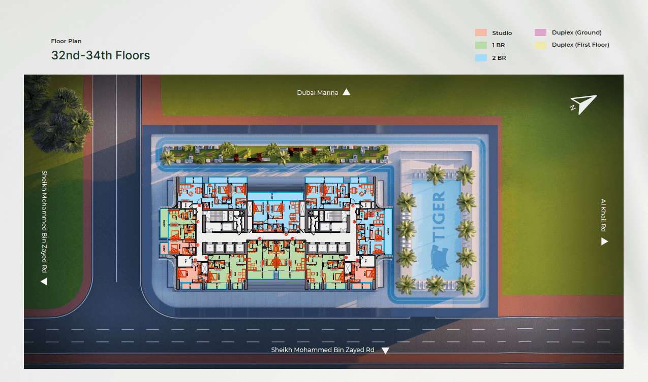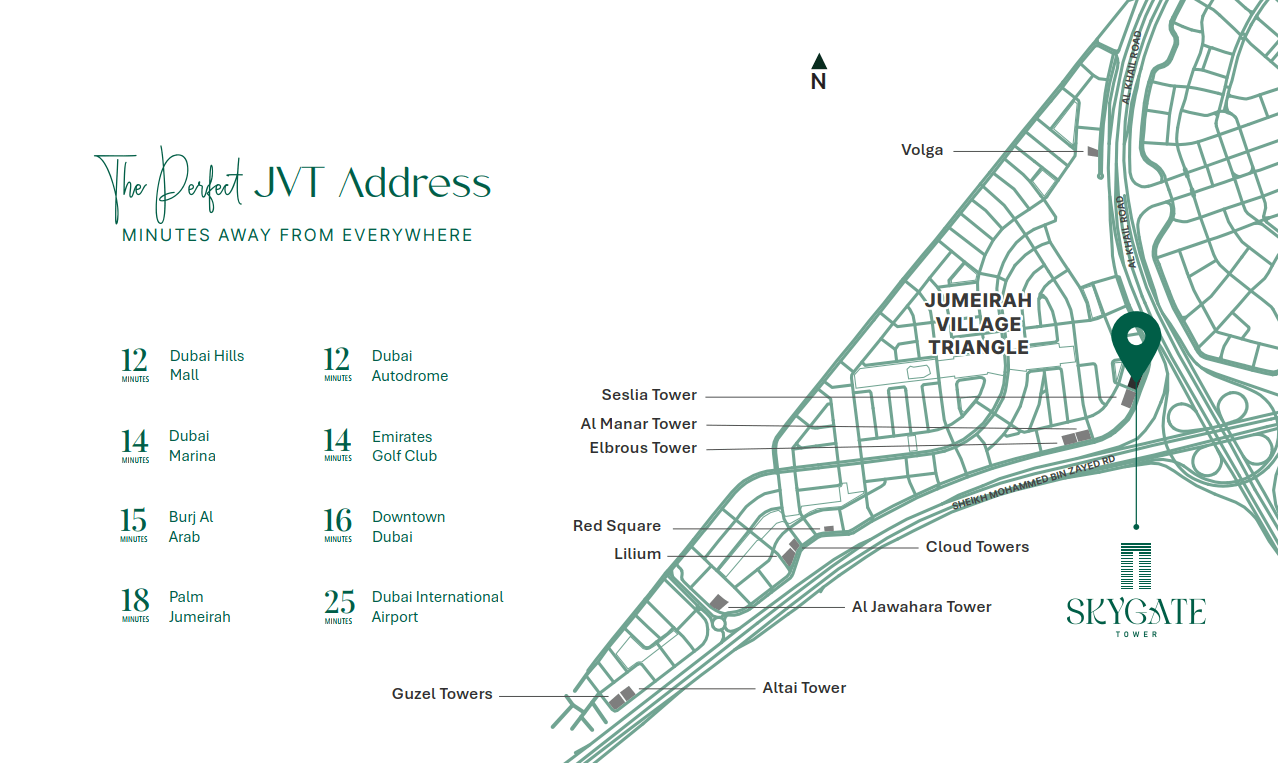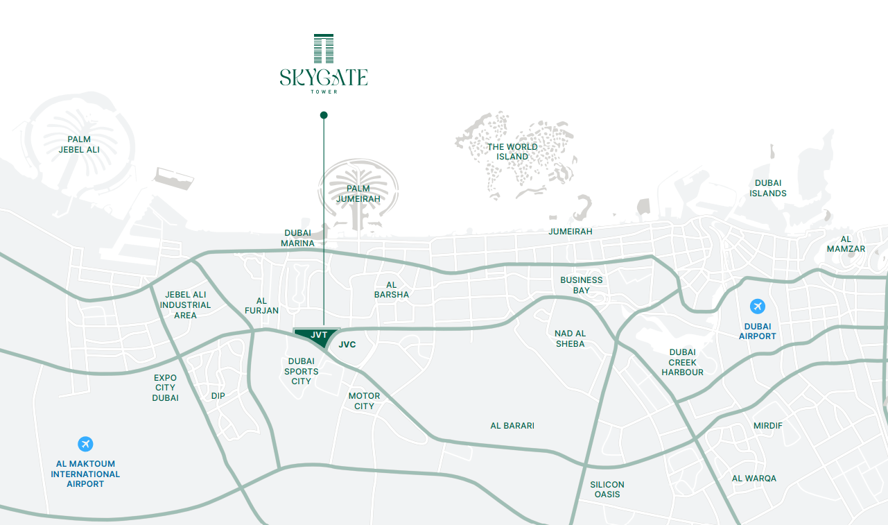 SkyGate Tower by Tiger Properties is a 43-storey landmark rising in Jumeirah Village Triangle, blending modern architecture with nature-inspired living. With lush green spaces, landscaped atriums, and a stunning horizon-edge swimming pool, the tower offers a serene escape in the heart of the city. Perfectly connected to Dubai Marina, Downtown, and major highways, SkyGate Tower is where luxury, greenery, and convenience meet in perfect balance.