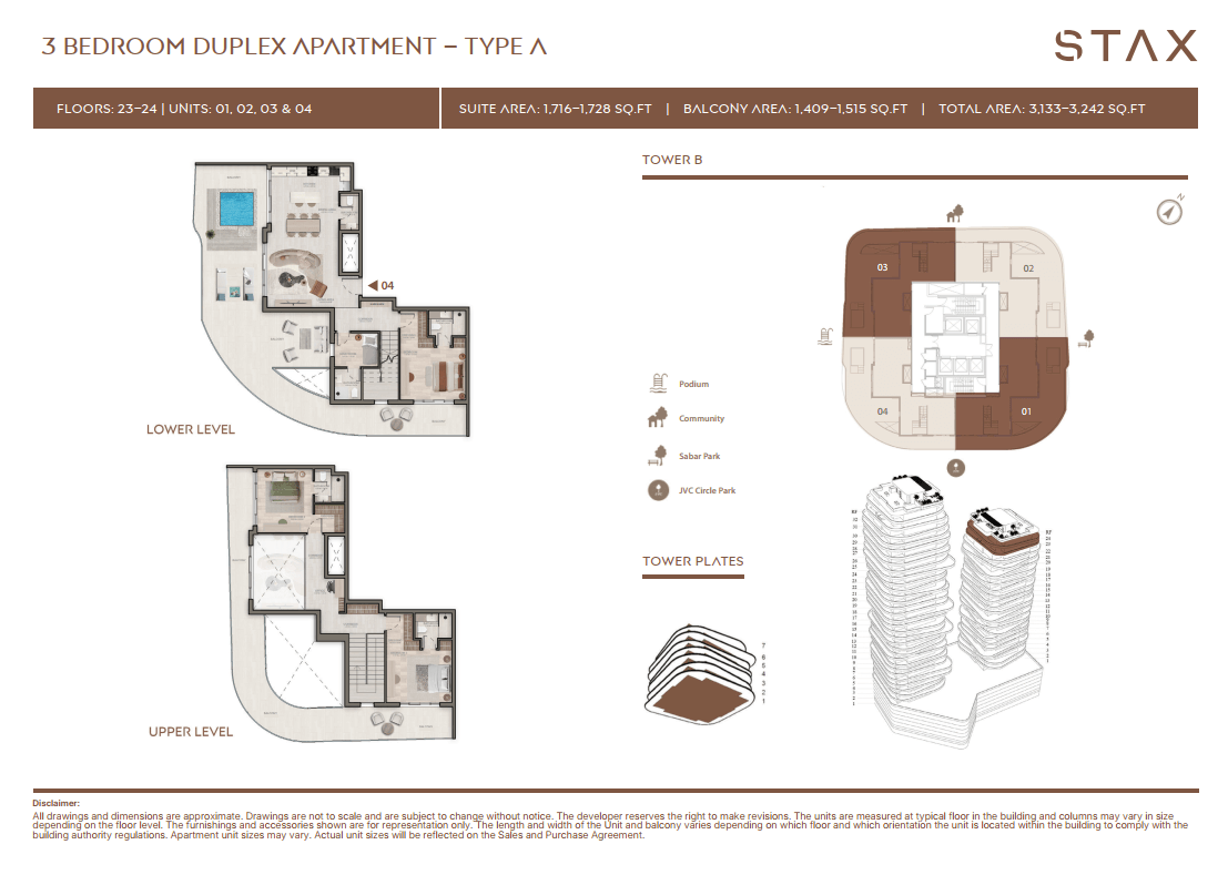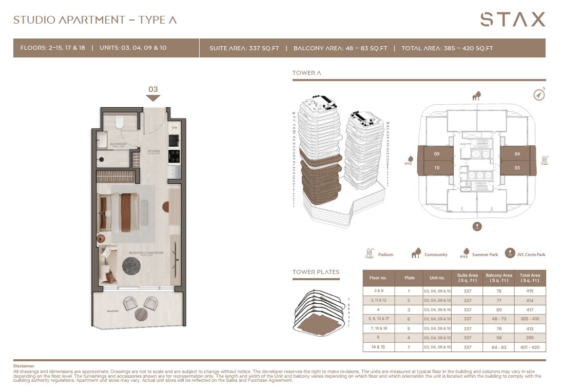 Stax comprises two residential towers that will be home to modern studios, 1 & 2-bed apartments and 3-bedroom duplexes, an ideal choice for those seeking studio apartments for sale in Dubai within a well-connected community.