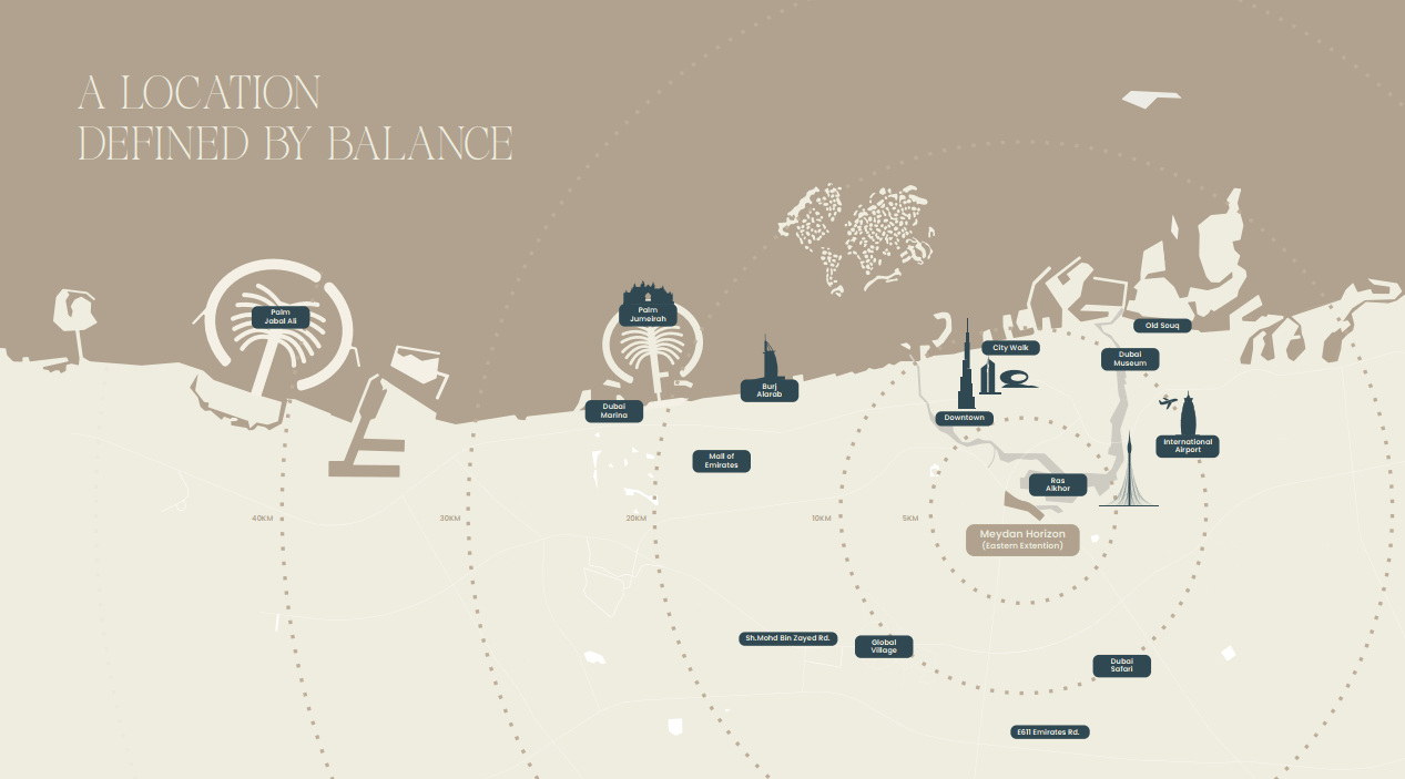 Perfectly positioned in Meydan Horizon, The Caden offers effortless connectivity to Downtown Dubai, Business Bay, and Dubai International Airport. Set within a vibrant yet tranquil waterfront setting, it places residents at the heart of the city’s energy while maintaining a sense of calm and exclusivity — delivering the ideal balance between accessibility and refined living.