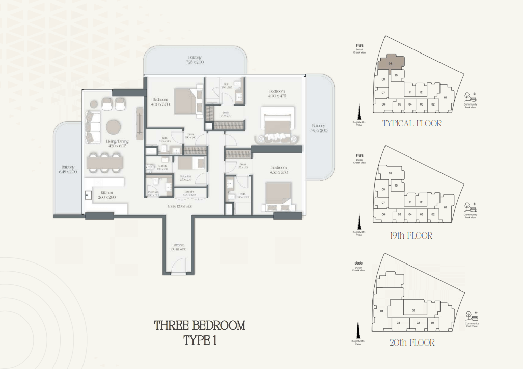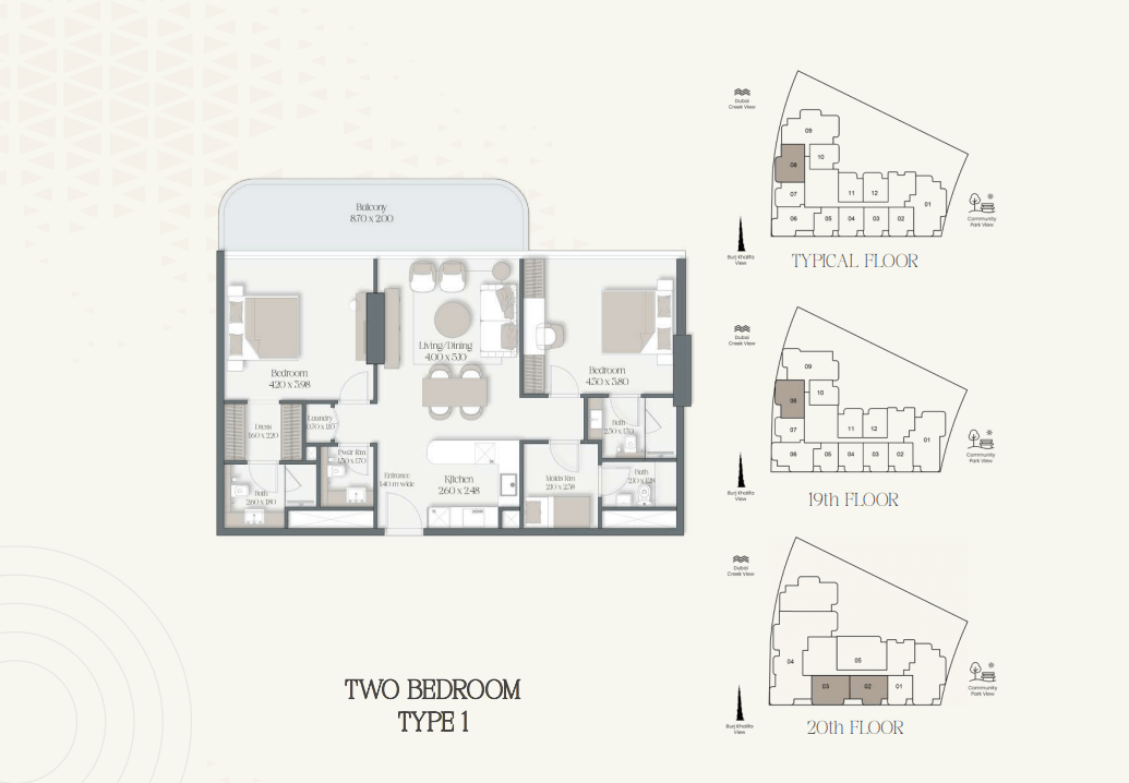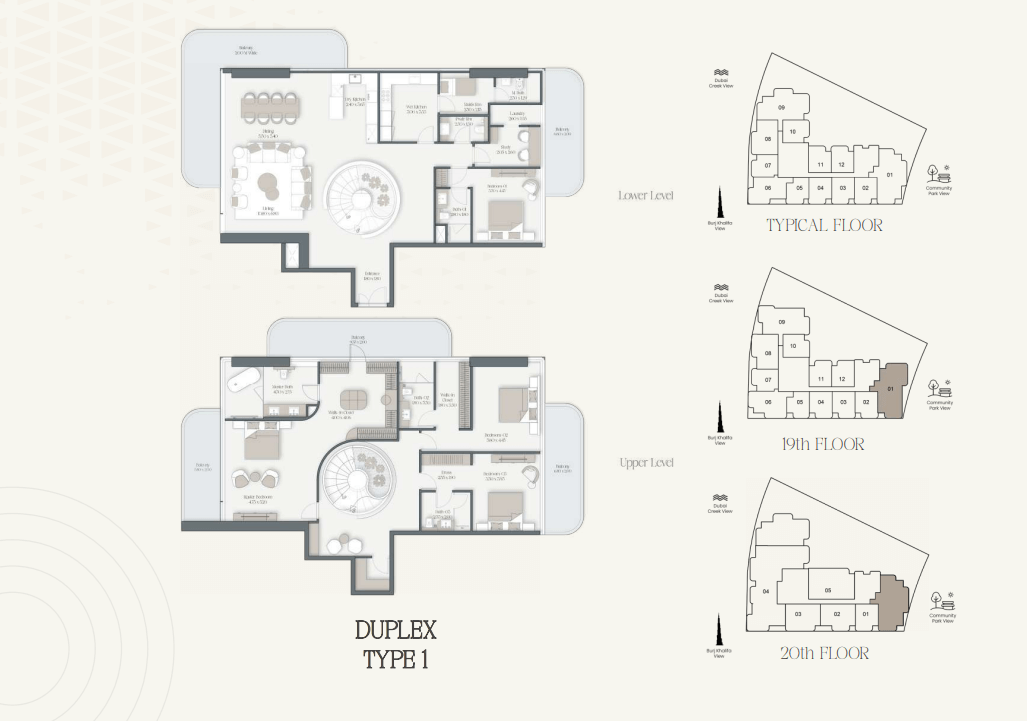 Set within Meydan Horizon, The Caden by Prescott offers a considered approach to modern living. Positioned between the city and the canal, the project comprises 221 fully furnished and fitted residences, including one, two, and three-bedroom Dubai apartments for sale, four-bedroom duplexes, and an exclusive penthouse, all planned to reflect quiet sophistication and modern comfort.