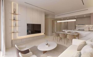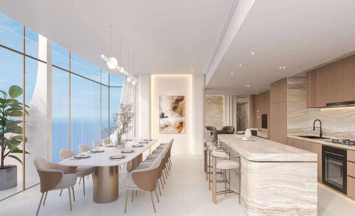 The tower offers one, two, and three-bedroom apartments, four-bedroom duplexes, and a signature penthouse. Every residence is fully furnished and finished with precision, featuring smart automation that manages lighting, climate, and security with ease
