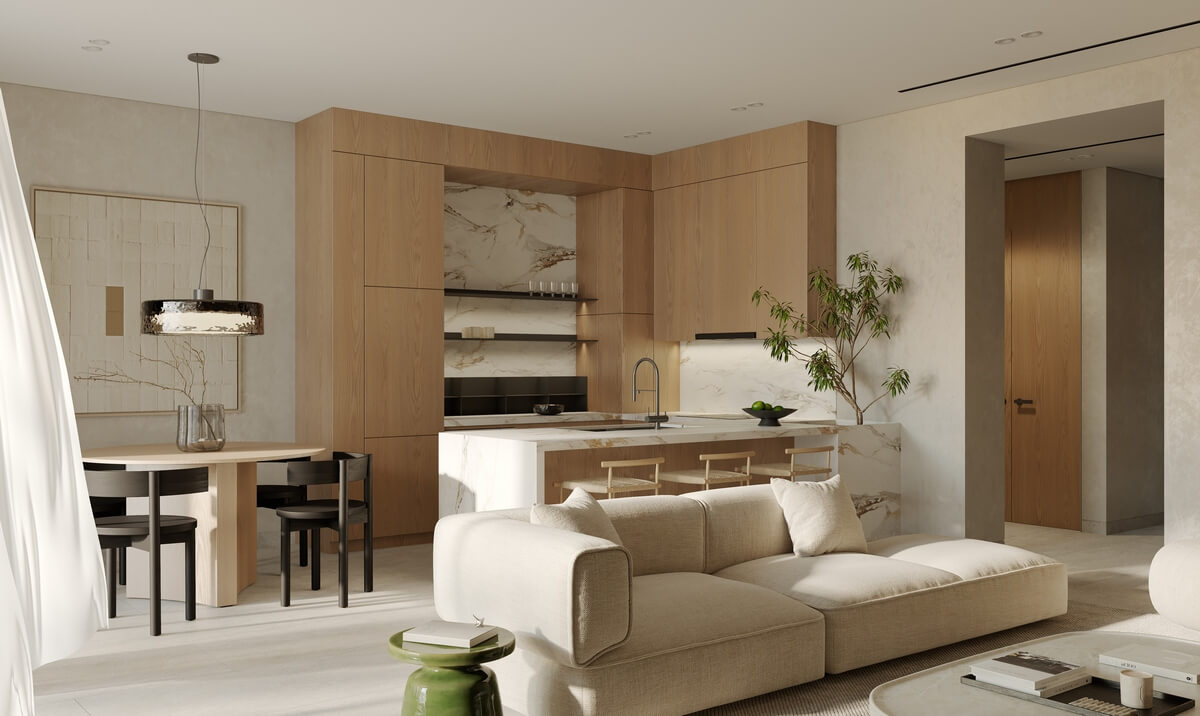 From the warm textures of stone to the soft tones of wood and light, The Cape celebrates refined minimalism. Each detail is chosen for quality, longevity, and a timeless sense of balance.