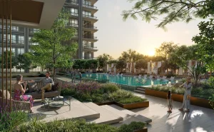 Two signature residential towers comprise 463 residences, from one bedroom homes to duplex penthouses, with generous layouts and views across Dubai landmarks. Lifestyle amenities include green walkways, premium retail and dining, resort-style and family pools, fitness and wellness spaces, sports courts, social lounges and shared working areas.