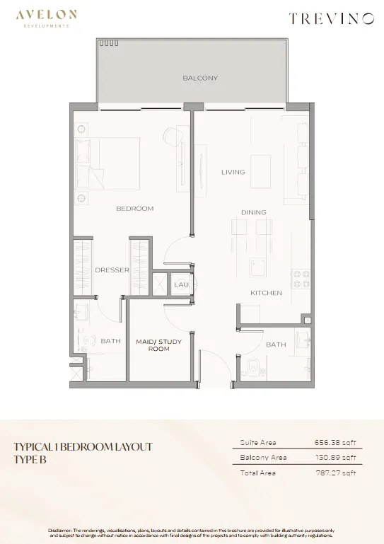 Trevino offers thoughtfully designed residences with spacious layouts, soft modern interiors, and large windows that connect indoor living with surrounding greenery. Each home features premium finishes including Italian tiles and German cabinetry, creating a refined and functional living space.