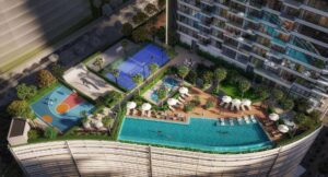 The residential development comprises outstanding units ranging from studios to one, two, and three-bedroom apartments, featuring exceptional amenities. From a 37-metre lap pool and a kids’ splash pad to a padel and urban basketball court, a barbecue area, a podcast room, a fitness studio with a climbing wall, a yoga studio, a clubhouse with a records lounge, a space dedicated for artists in residence, and more.