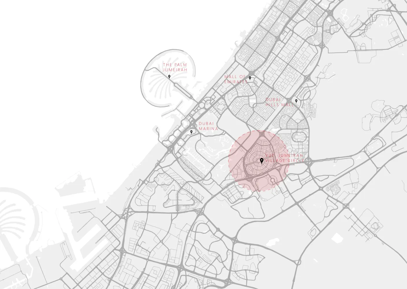 In the heart of JVC, you’ll be surrounded by a vibrant urban atmosphere. Within a short distance, you can effortlessly reach key landmarks such as Mall of the Emirates, Dubai Hills Mall, and the Burj Khalifa district—all within a 15-20 minute drive. Vue, transforming the traditional concept of a city center, also provides seamless connectivity to Sheikh Mohammed Bin Zayed Road, making your city access not just easy but enjoyable.