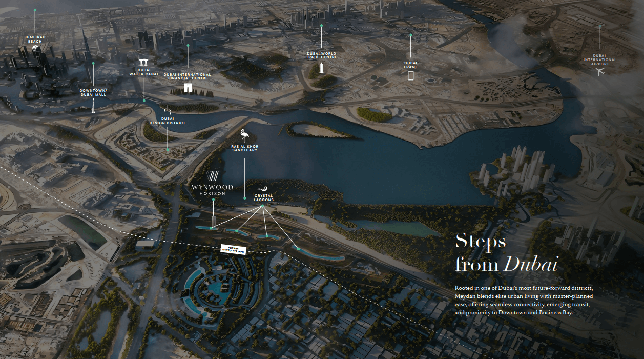Set within the vibrant community of Meydan Horizon, Wynwood Horizon offers a lifestyle at the city’s most connected crossroads. Just minutes from Downtown Dubai, Dubai International Airport, and Dubai Design District, residents enjoy effortless access to business, leisure, and entertainment.